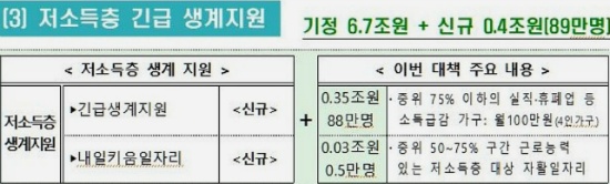 실직이나 휴폐업 등으로 생계위기에 빠진 가구를 대상으로 긴급 생계지원 프로그램을 가동한다.