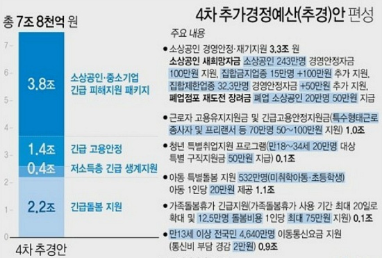 4차 추경 - 학원 소상공인 자영업자 200만원 지급 및 대출 지원